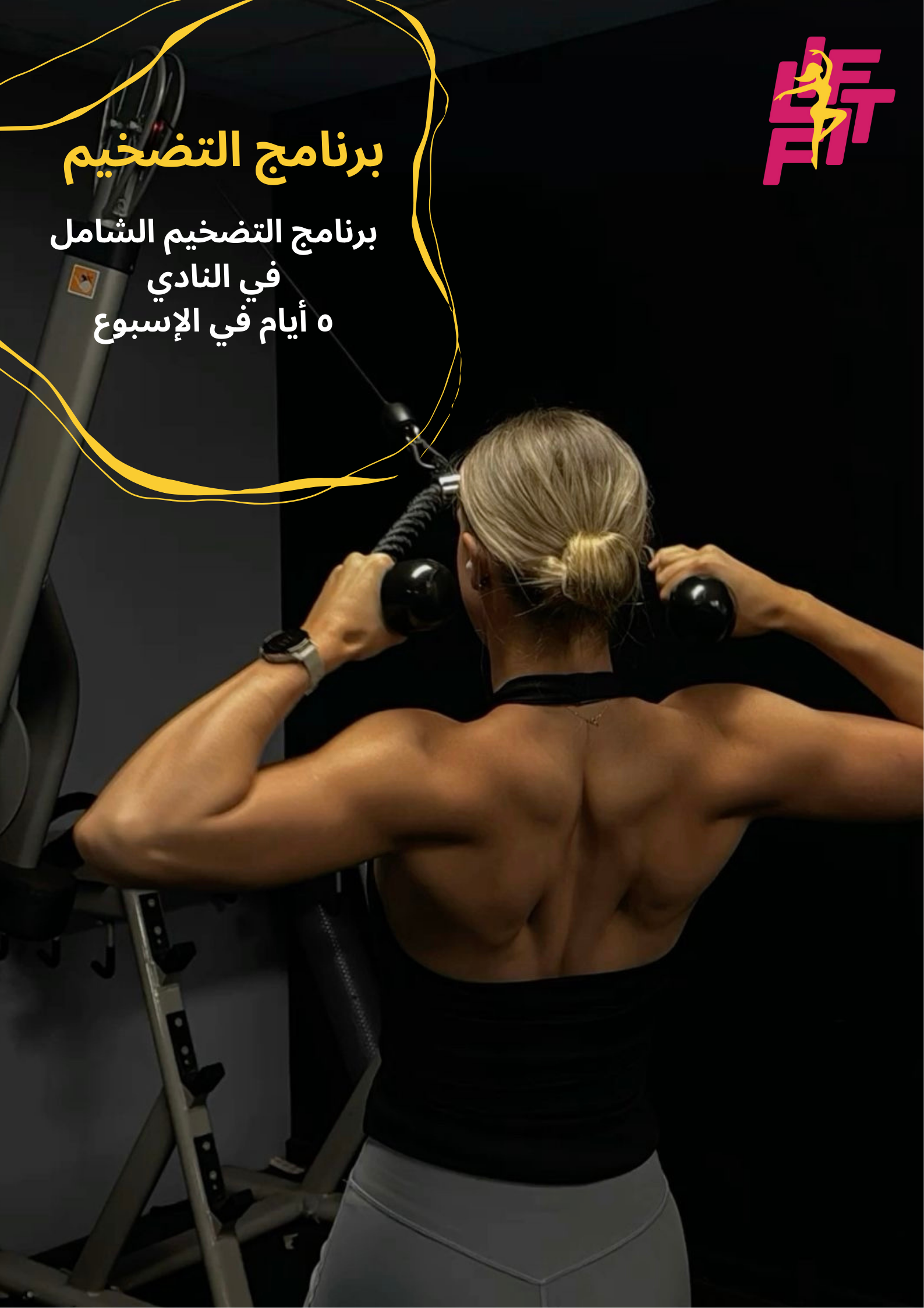 يمكنكي شراء جدول كامل متكامل للتضخيم وبناء العضلات في النادي كما يحتوي الجدول على عدة عناصر هامة-الجدول شرائي فقط بدون متابعة -لايسمح باسترداد الأموال بعد الشراء وإرسال البرنامج -البرنامج يرسل مره واحدة فقط pdf -البرنامج للإستخدام الشخصي فقط يمنع نشره