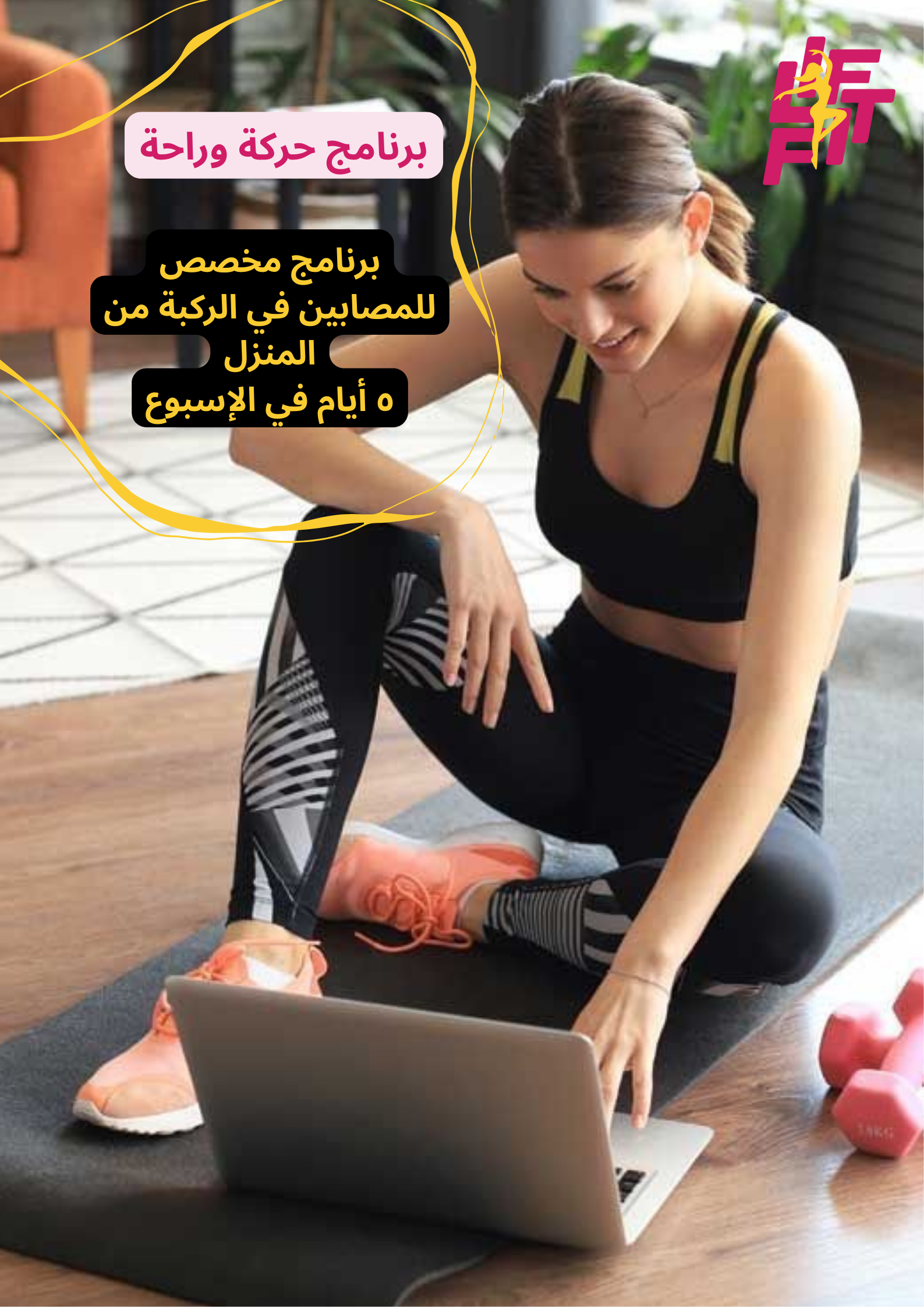 يمكنكي شراء جدول تدريبي كامل متكامل للمصابين في الركب كما يحتوي الجدول على عدة عناصر هامة -الجدول شرائي فقط بدون متابعة -لايسمح باسترداد الأموال بعد الشراء وإرسال البرنامج -البرنامج يرسل مره واحدة فقط pdf -البرنامج للإستخدام الشخصي فقط يمنع نشره