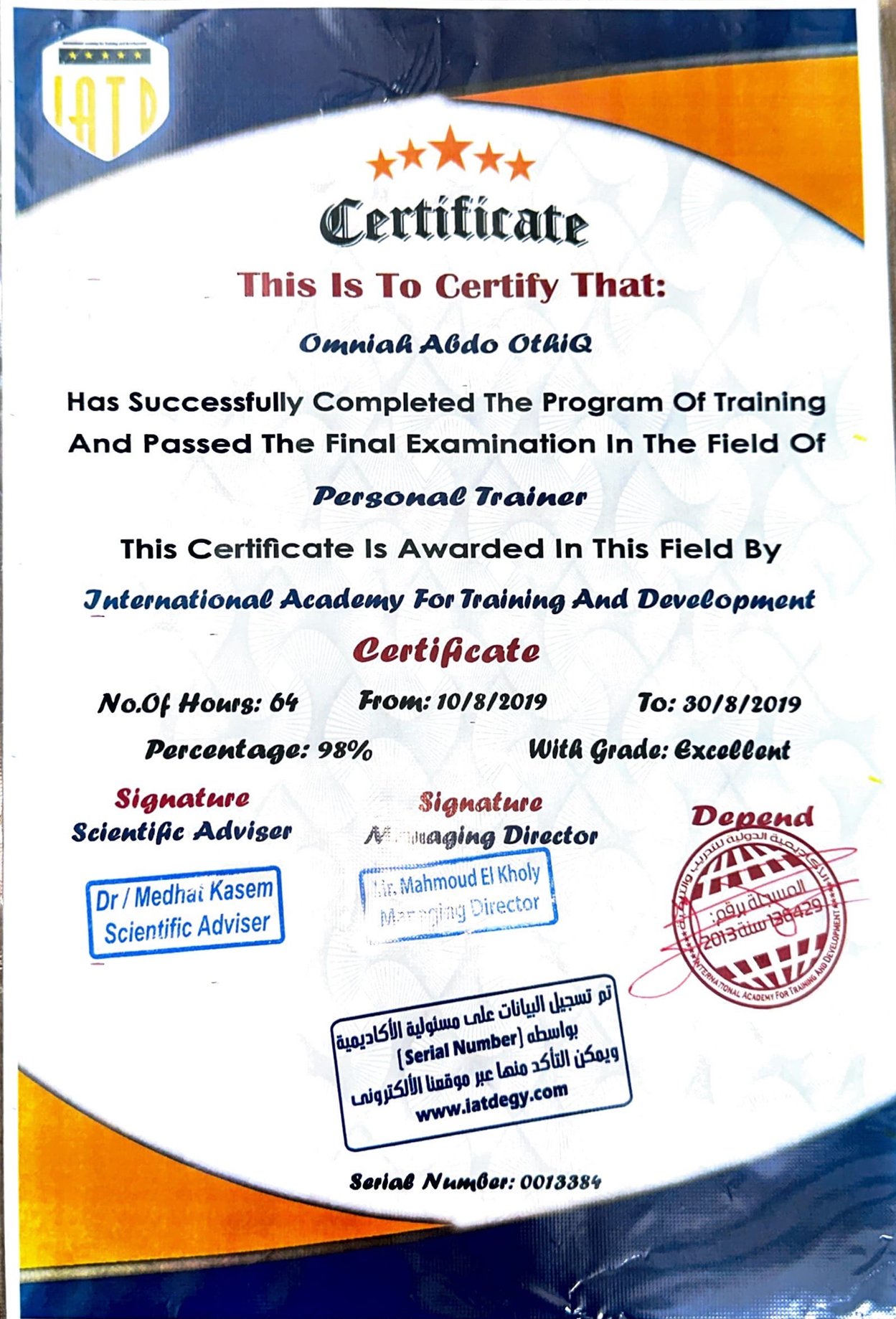 حاصلة علي شهادات لأكثر من تخصص مهتمة بتبسيط نمط الحياة الصحي وإضافة المتعة للتمارين للفعاليات والرعاة التواصل مباشرة على البريد الألكتروني الخاص omniah2014@hotmail.com